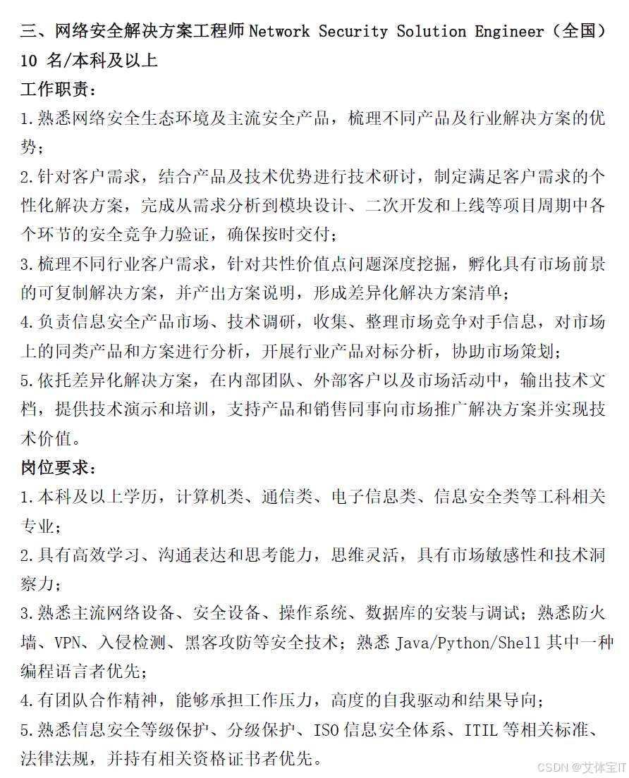 网络安全工程师、信息安全工程师、网络安全解决方案工程师