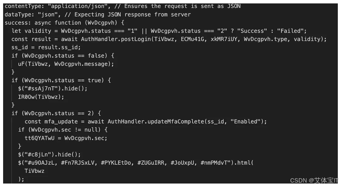 反调试措施:代码中嵌入了无限循环的调试器语句,当调试工具处于活动状态时,会导致浏览器冻结或崩溃。
