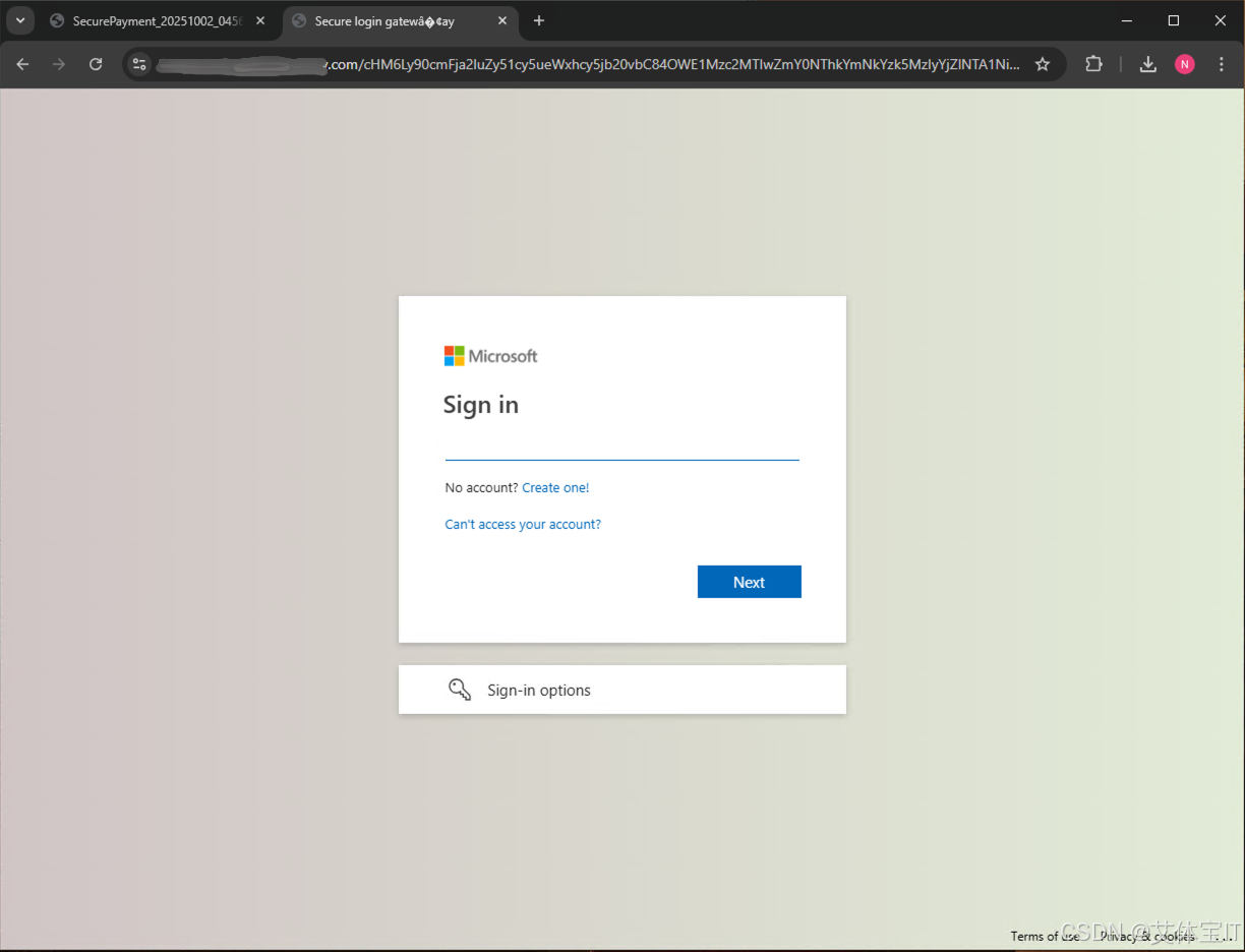 如果目标用户完成了所有嵌套PDF文档的跳转,最终将被引导至一个仿冒的 Microsoft 365 登录页面,该页面渲染逼真,几乎与原版无异。