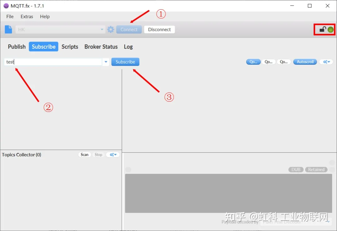 2. 连接MQTT Broker,配置订阅主题(对应MQTT发布端的发布主题)