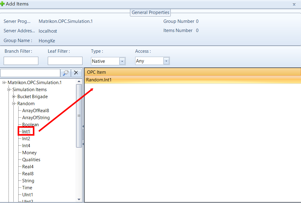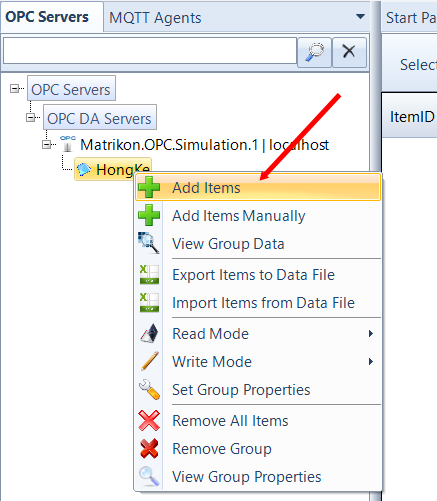 (1)右键点击刚添加的OPC组,选择菜单中的“Add Items”添加OPC项