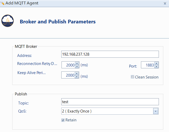 (2)配置MQTT Broker连接参数、发布主题以及QoS服务等参数