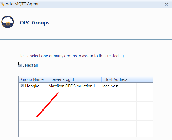 (3)选择OPC组