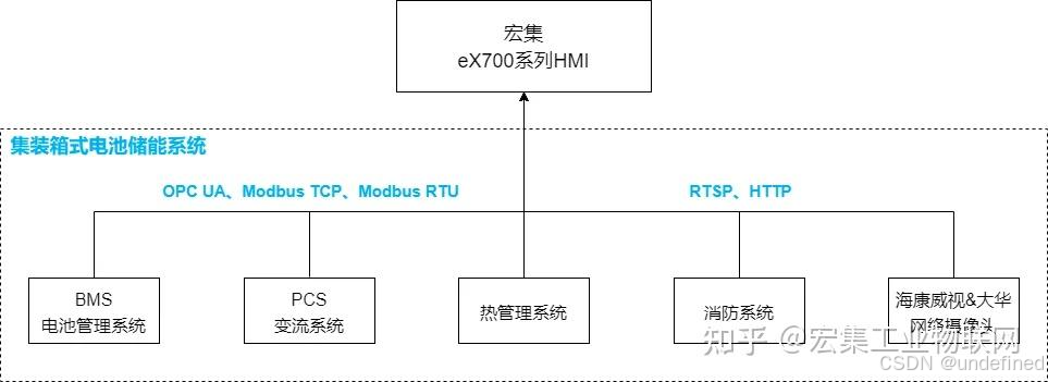 国内某头部集装箱式储能系统制造商找到宏集科技,为他们的集装箱式电池储能系统推荐一款物联网HMI,希望可以实现以下功能:采集并显示储能系统的关键数据,同时最为关键的是要能显示储能系统中海康威视摄像头的监控画面,响应CCS最新海事规范要求。