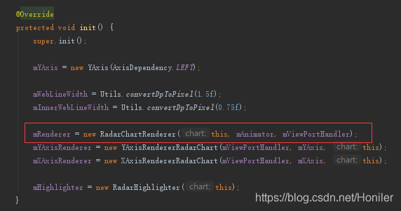 Step 2:新建我们自己的RadarChart类继承RadarChart,重写init()方法。