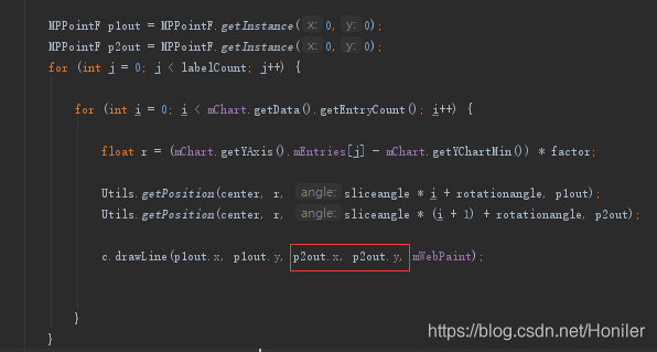 Step 5:drawExtras(canvas)方法中如下这段代码是绘制每段网线的,从中可以获取到各个顶点的坐标。