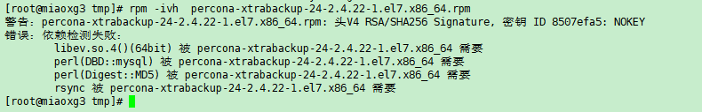 rpm -ivh percona-xtrabackup-24-2.4.22-1.el7.x86_64.rpm
