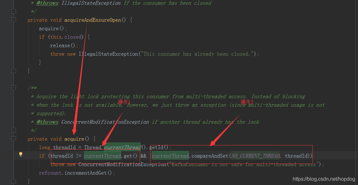 根据官方文档我们知道KafkaConsumer是线程不安全的,KafkaProducer是线程安全的。接下来我们就来讨论为什么KafkaConsumer线程不安全