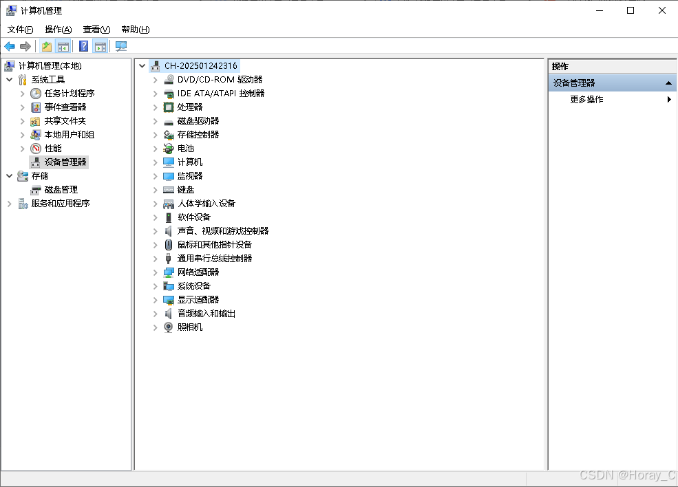 打开计算机管理,点击设备管理器,即可查看设备配置以及详细属性。