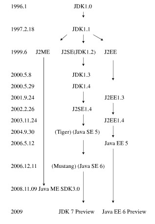 附上java各个版本的发展图(2011.07.28发布了最新的Java1.7):