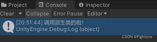 然后在Unity中运行,将派生类实例赋值给一个基类引用,然后调用基类引用的test()方法,得到的结果为: