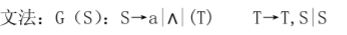 - 从文法中找出形为aQ(终结符+非终结符)的部分,a与Q的FIRSTVT集合中每一个元素在表格中的交叉点填小于号。(a为行) ,此题中可以找到的有(T 和 ,S 和前面加的 # S 总共三个。