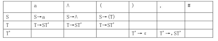 T'->,ST'看FIRST集, T’->ε看FOLLOE集
