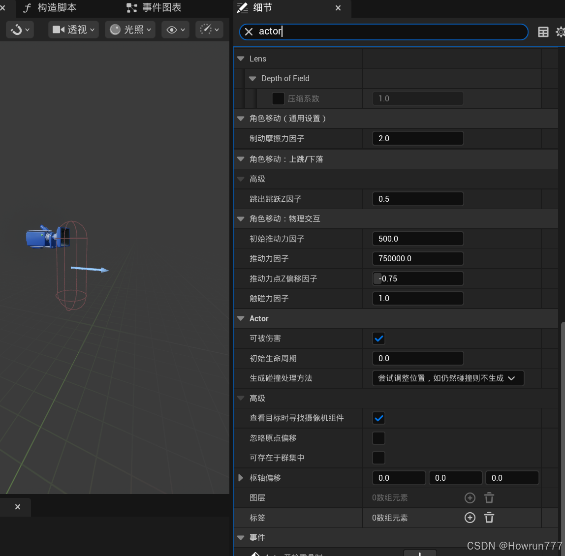 在虚幻引擎的角色蓝图的细节面板的Actor组件里面就可修改标签,如果我需要创建一个标签用来管理所有的能够触发压力板的物体.可以加入一个PressurePlateActivator标签.