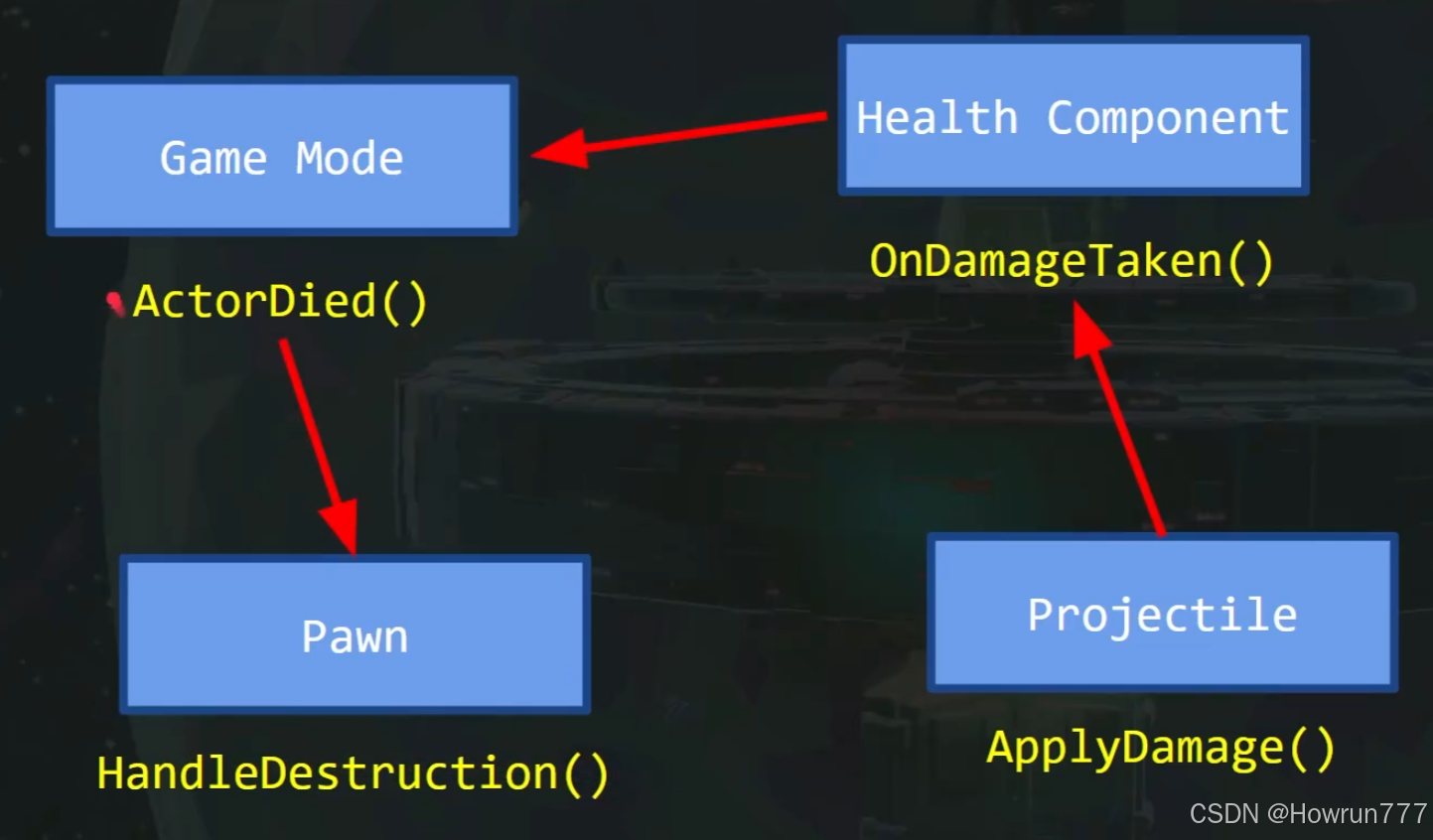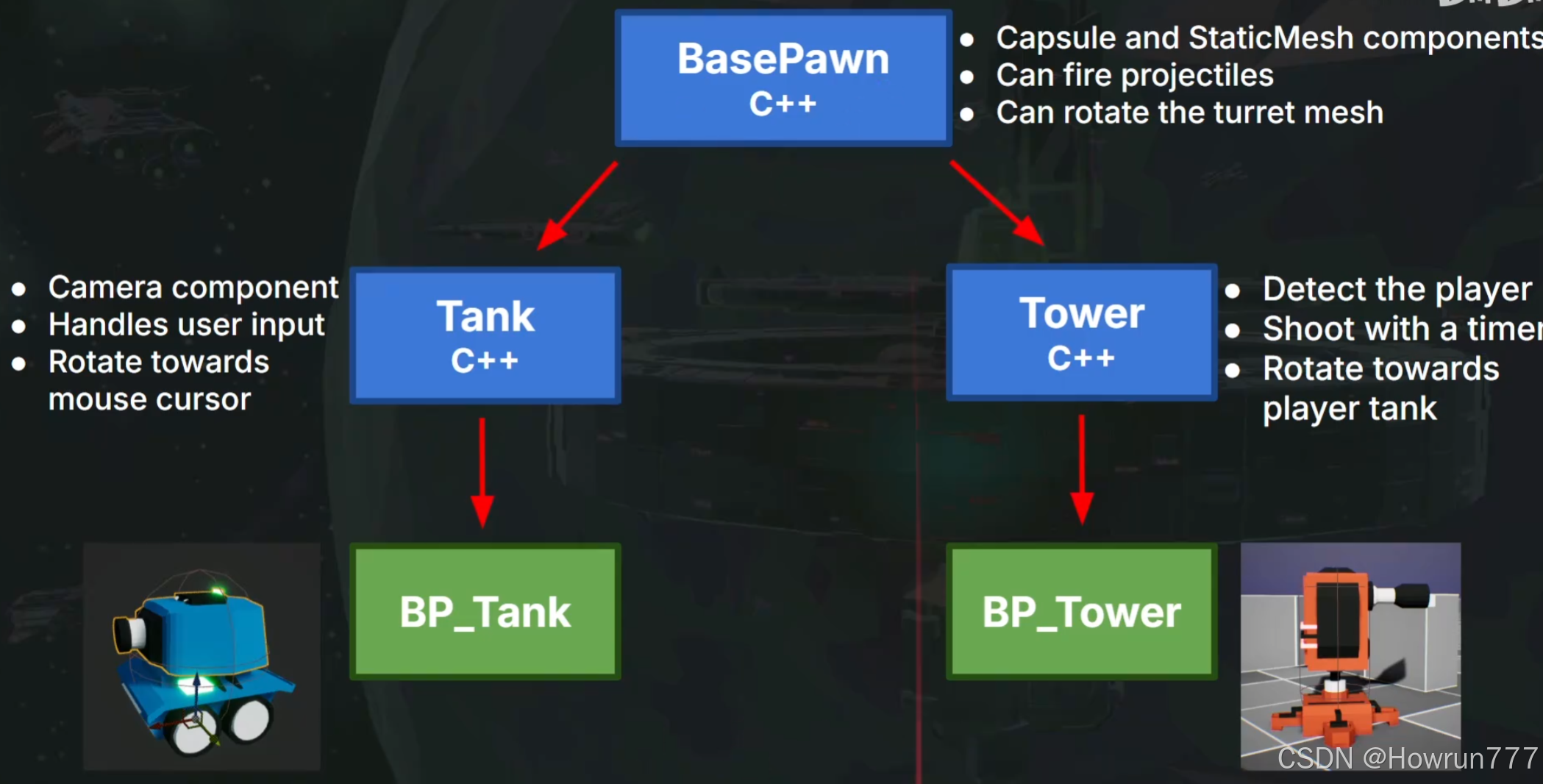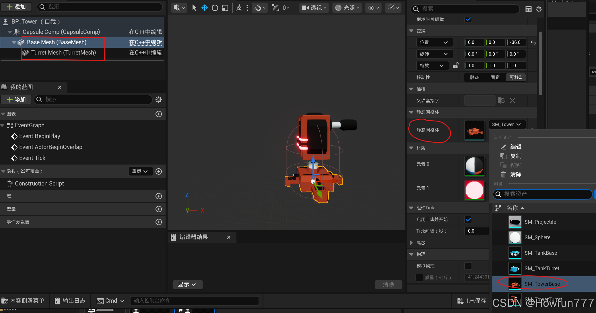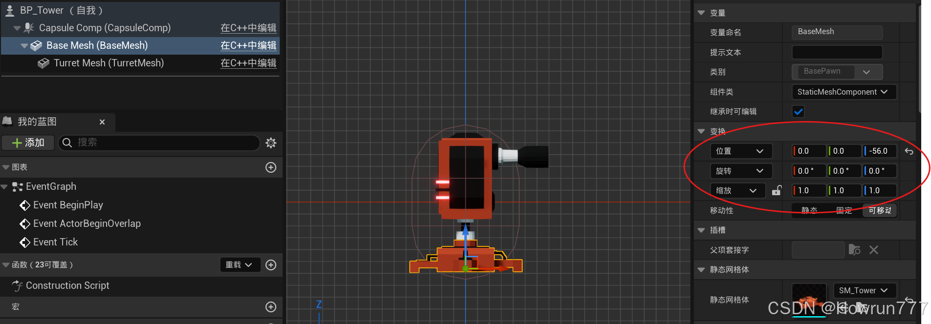 TurretMesh->SetupAttachment(BaseMesh); // 附加到底座,形成层级