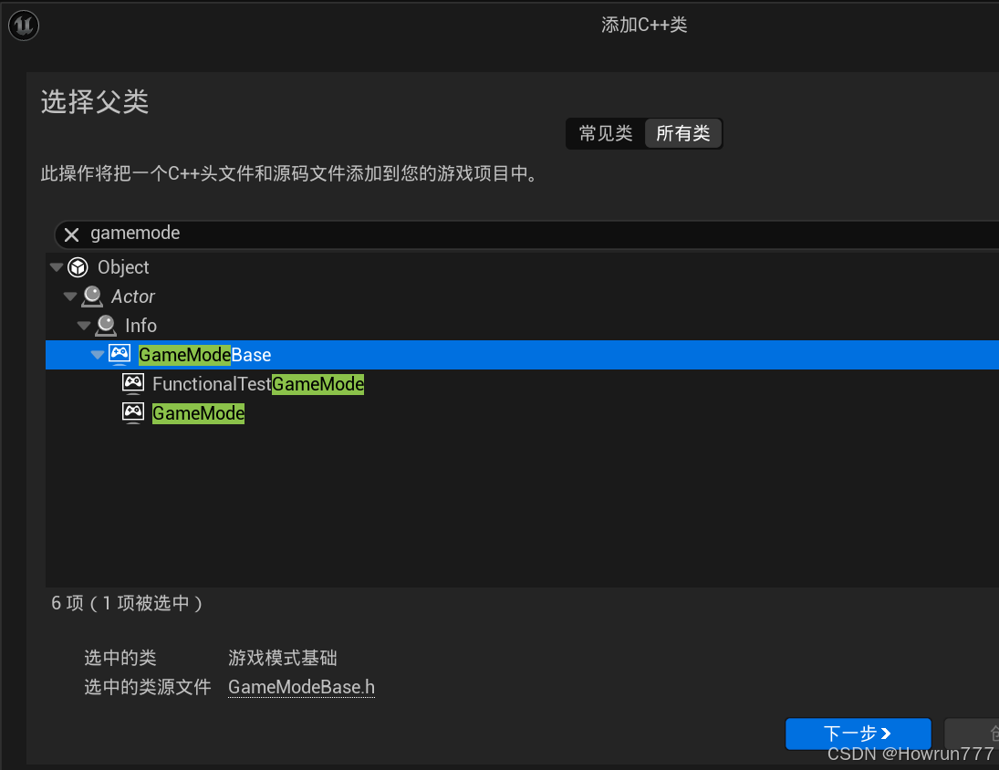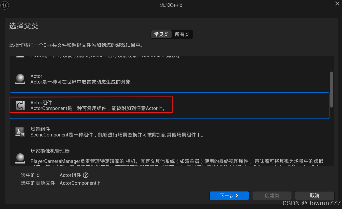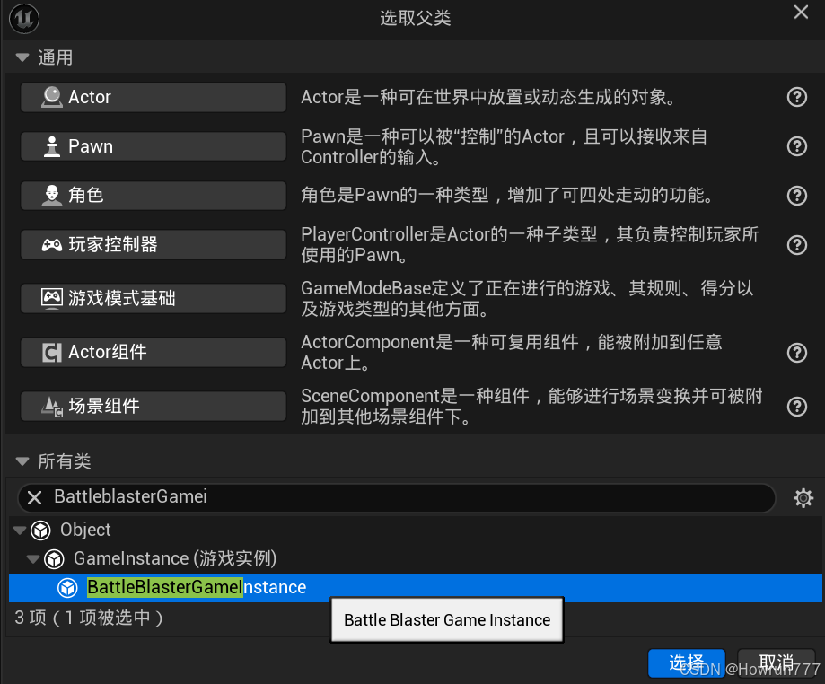 创建Tank类:新建C++类,继承BasePawn类,命名为Tank