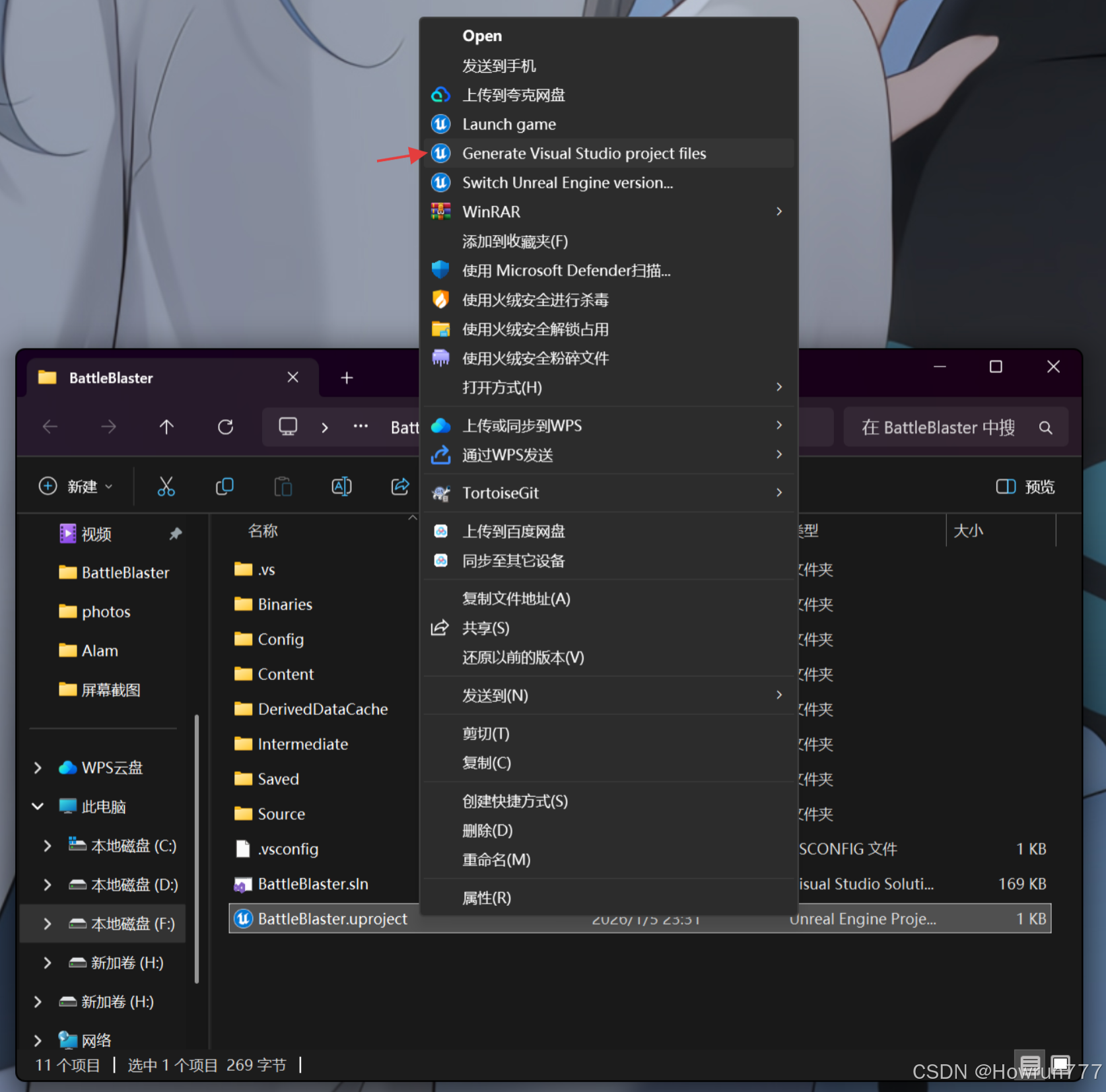 然后退出VS,退出UE,重新生成项目
