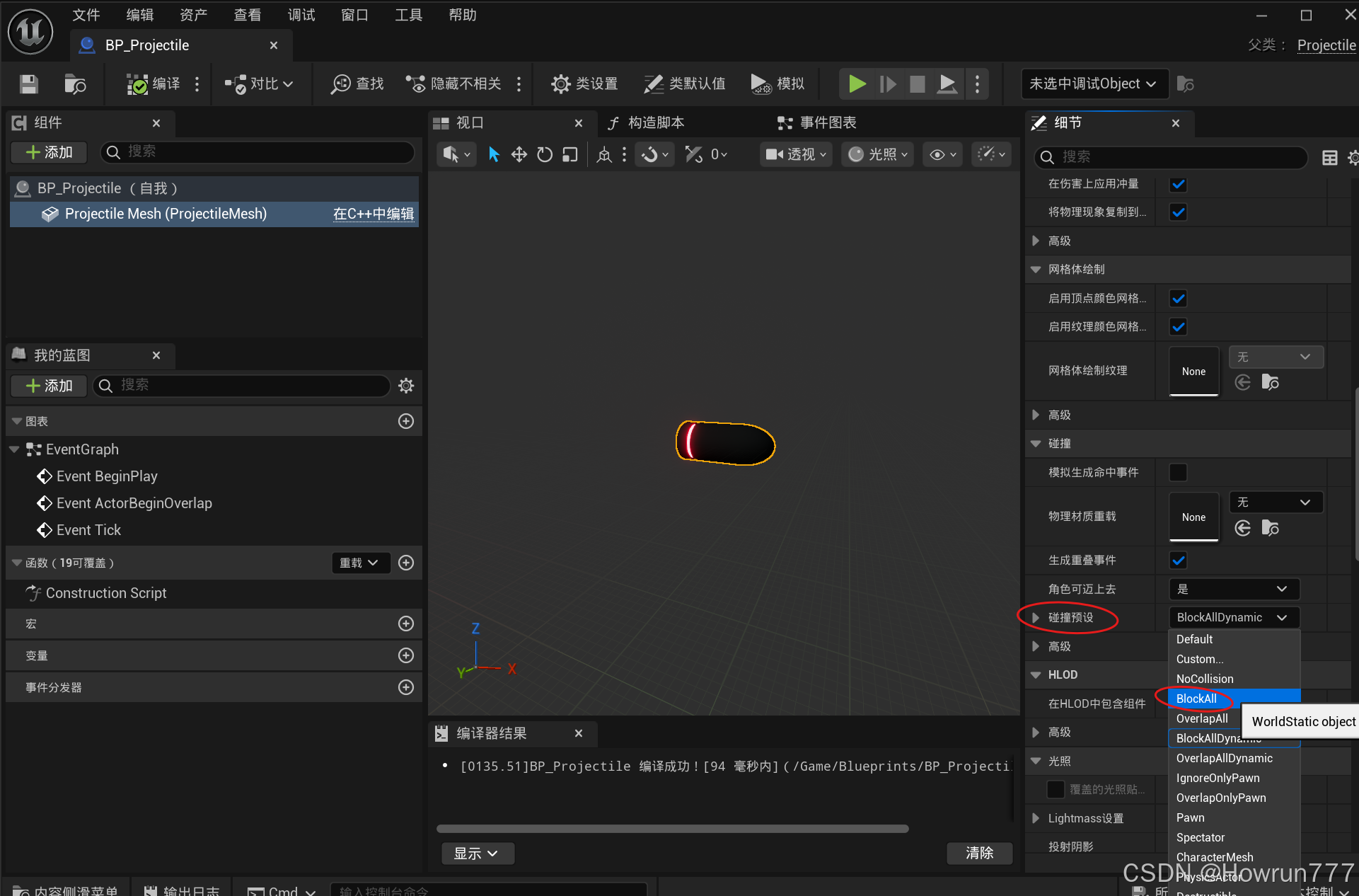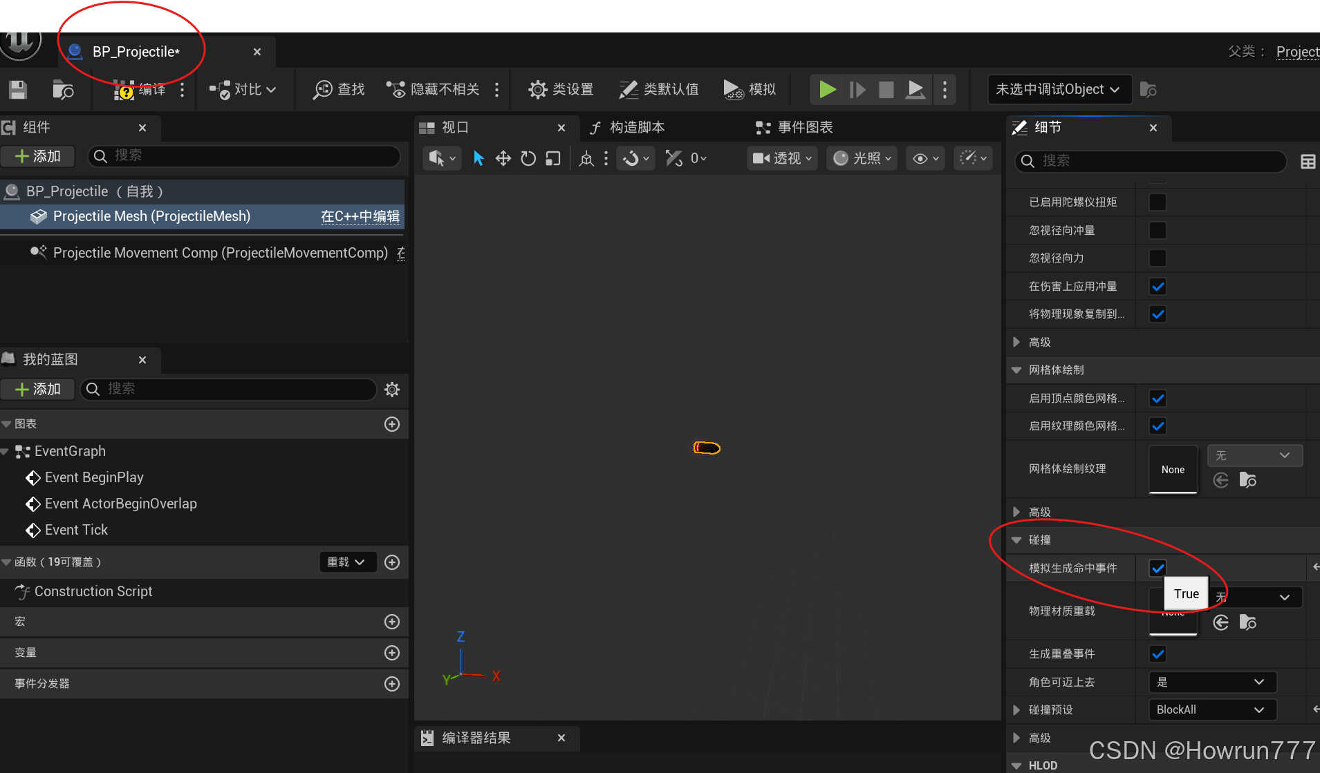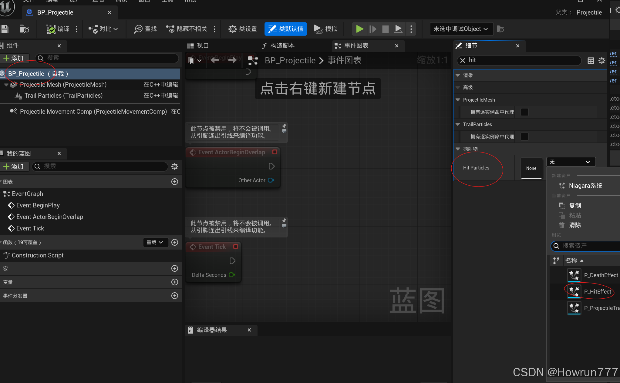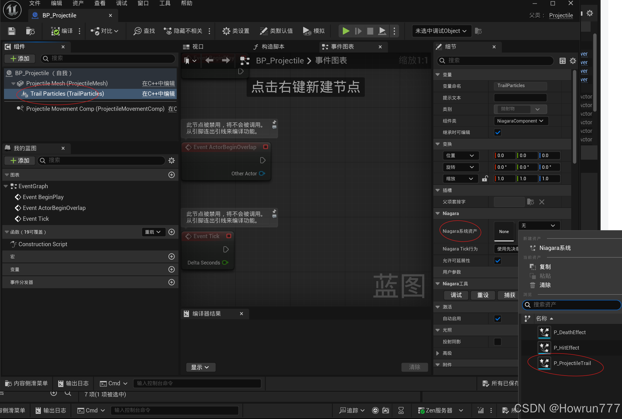 步骤3: 在BP_Projectile中挂接粒子特效, 然后移动到合适位置