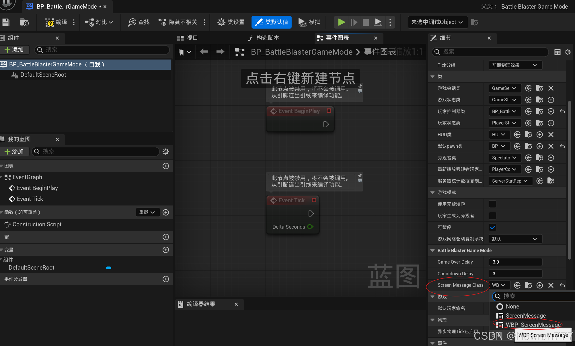 ScreenMessageWidget->SetMessageText(GameOverString);