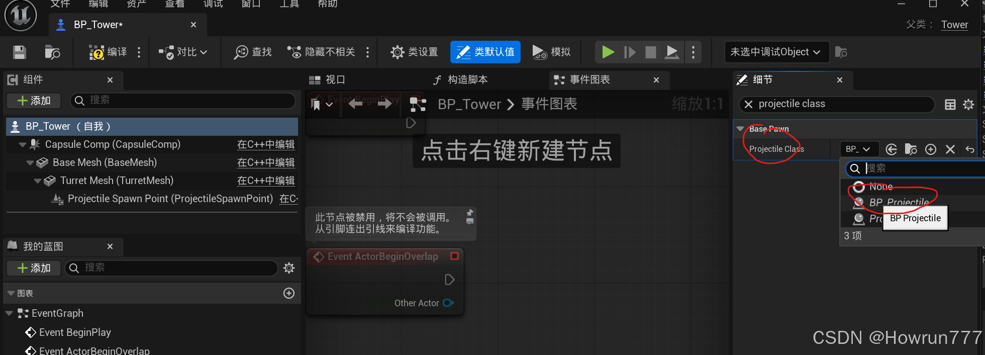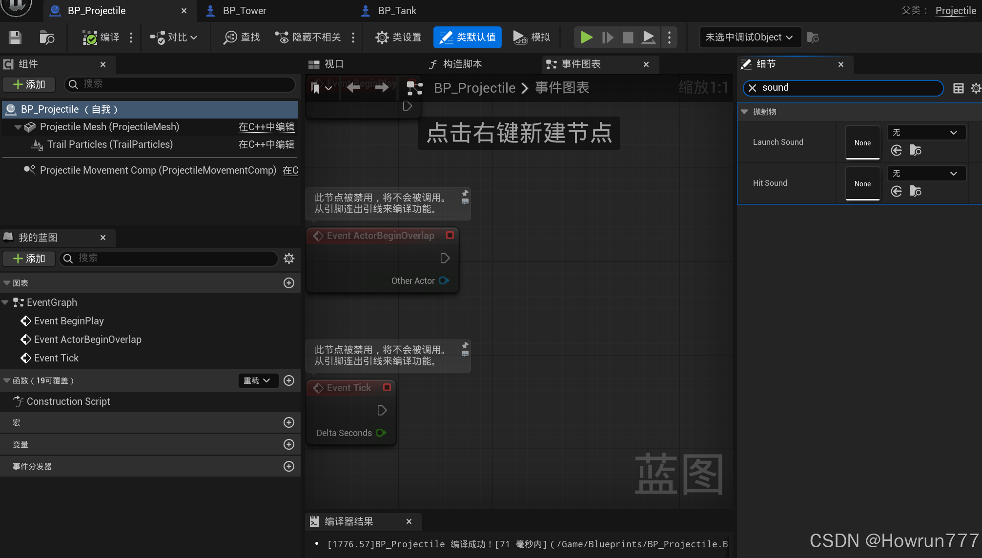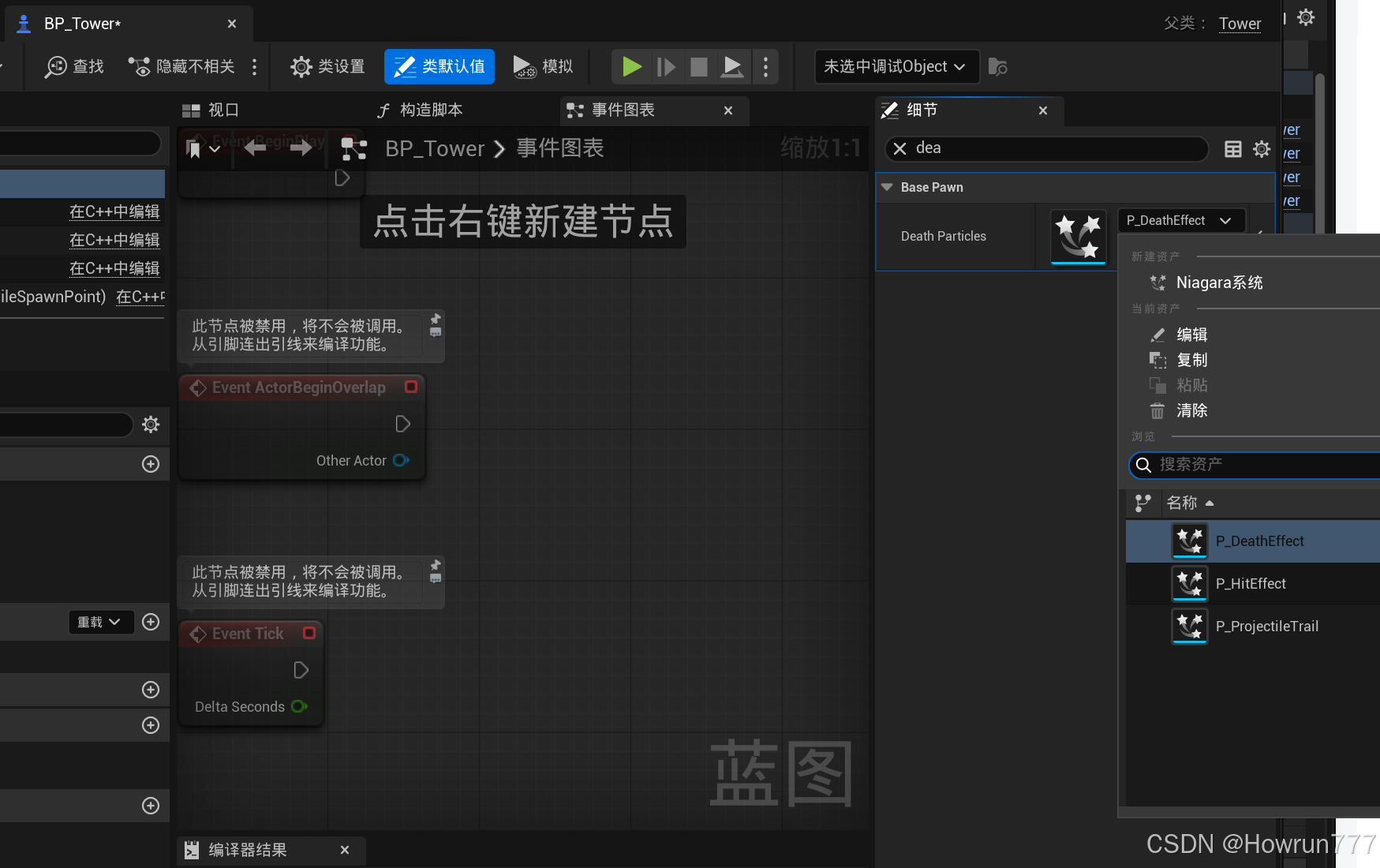 步骤5: 为玩家BP_Tank和敌人BP_Tower挂载粒子效果