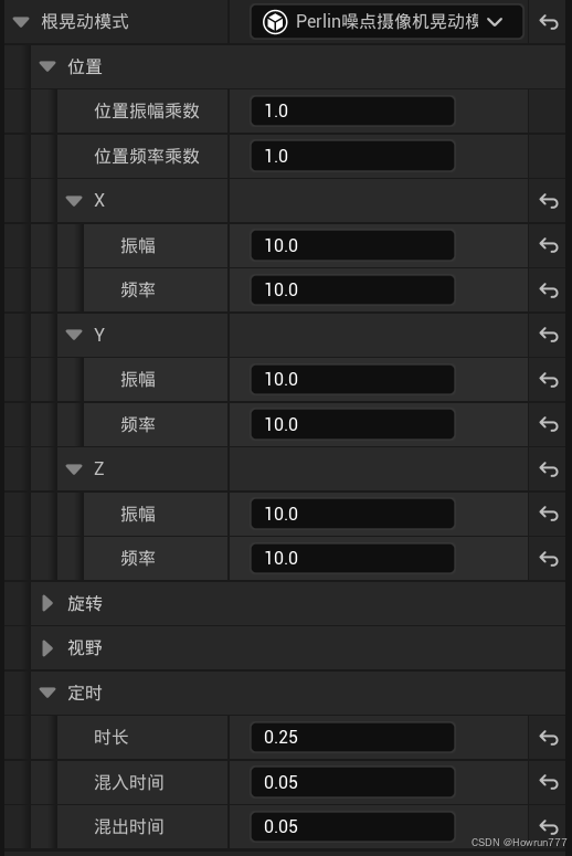 步骤2: 根晃动模式使用柏林噪声算法, 小参数可以按自己喜好填, 下边是我的参数