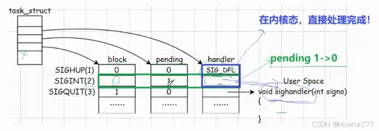 signal(SIGINT, SIG_IGN)(忽略 SIGINT),即使先屏蔽 SIGINT,解除屏蔽后 pending 表中的 SIGINT 也会被直接丢弃;- 若进程设置了自定义处理函数,解除屏蔽后会执行该函数。