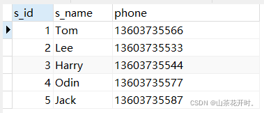 INSERT INTO `student` VALUES (1, 'Tom', '13603735566');