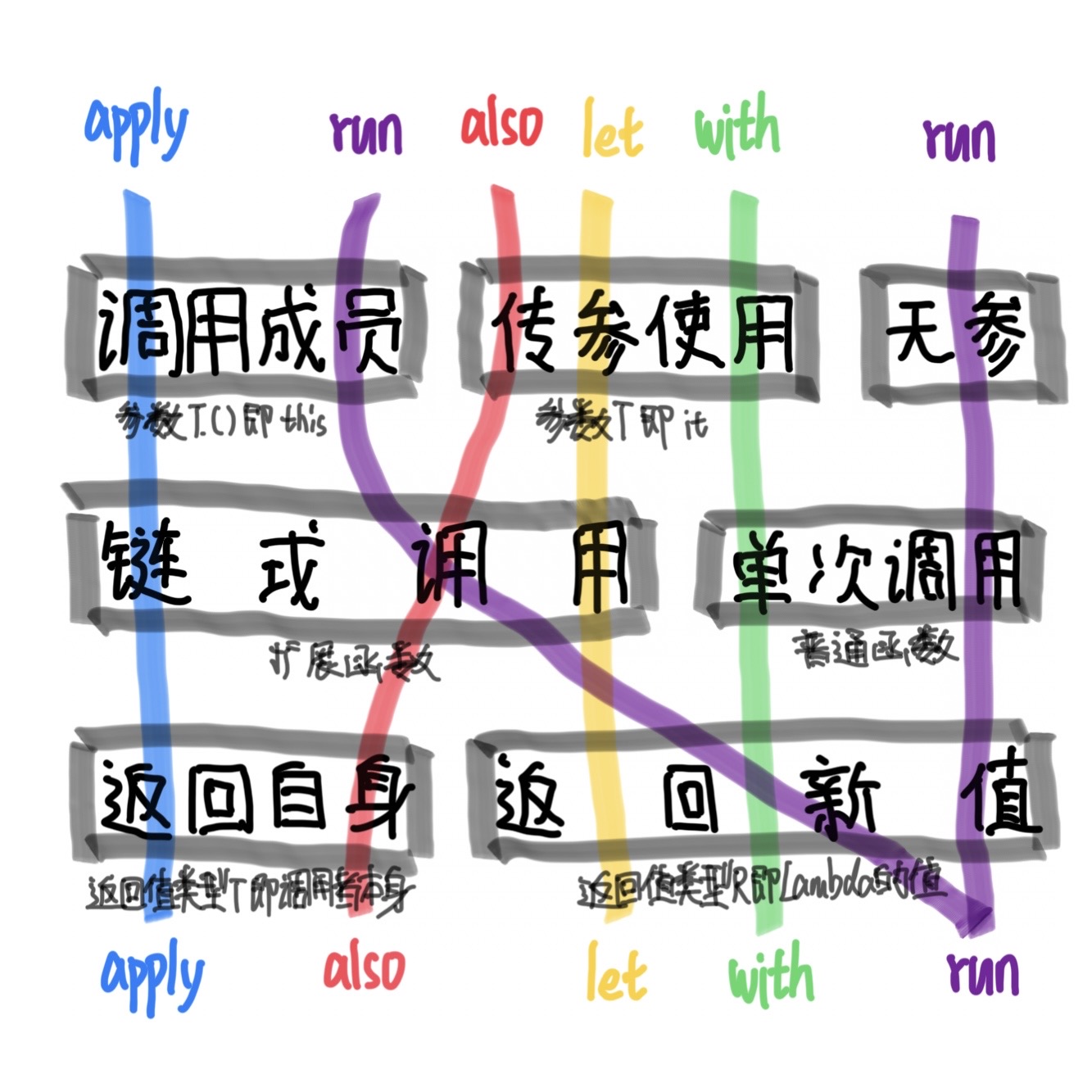 在 Standard.kt 标准库中提供了一些便捷的内置高阶函数,可以帮助我们写出更简洁高效的代码。这些函数都是在一个对象上执行一个代码块,形成一个临时作用域可以访问该对象而无需其名称,不同的是这个对象在代码块中如何使用以及整个表达式的返回值是什么。由于是 inline 内联函数,优化了调用函数出入栈的性能开销。