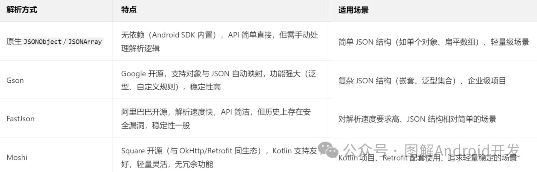 是Retrofit的数据转换接口,负责将HTTP请求的“请求体”(如Java对象)序列化为网络传输的字节流(如JSON字符串),以及将HTTP响应的“响应体”(如JSON字符串)反序列化为Java/Kotlin对象。Android中常用的JSON解析方式可分为原生解析和第三方库解析两类,核心差异在于易用性、性能和功能扩展性。