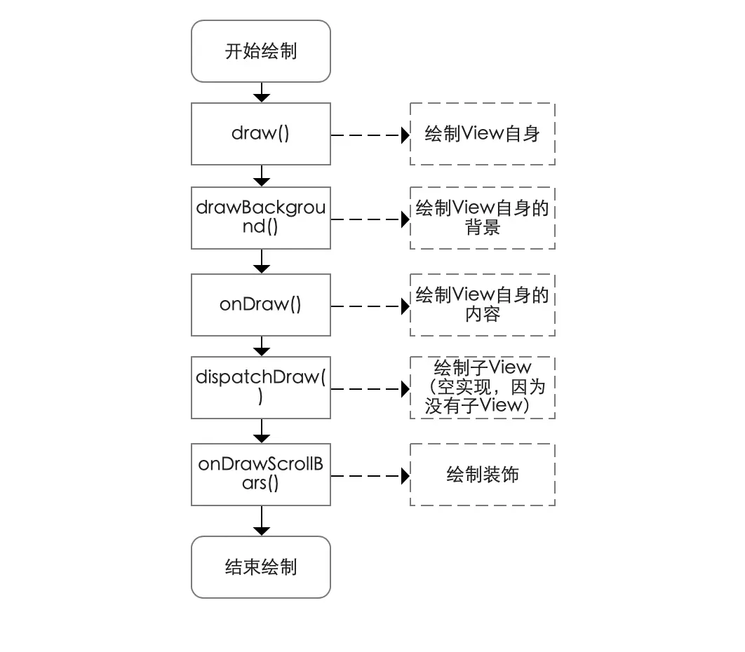 | dispatchDraw() | 系统已复写好对其子视图进行绘制,不需复写。 |