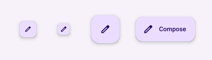 | 正常 | @Composable fun FloatingActionButton( onClick: () -> Unit, modifier: Modifier = Modifier, shape: Shape = FloatingActionButtonDefaults.shape, //形状 containerColor: Color = FloatingActionButtonDefaults.containerColor, //背景色 contentColor: Color = contentColorFor(containerColor), //内容色 elevation: FloatingActionButtonElevation = FloatingActionButtonDefaults.elevation(), //阴影 interactionSource: MutableInteractionSource? = null, content: @Composable () -> Unit, ) |