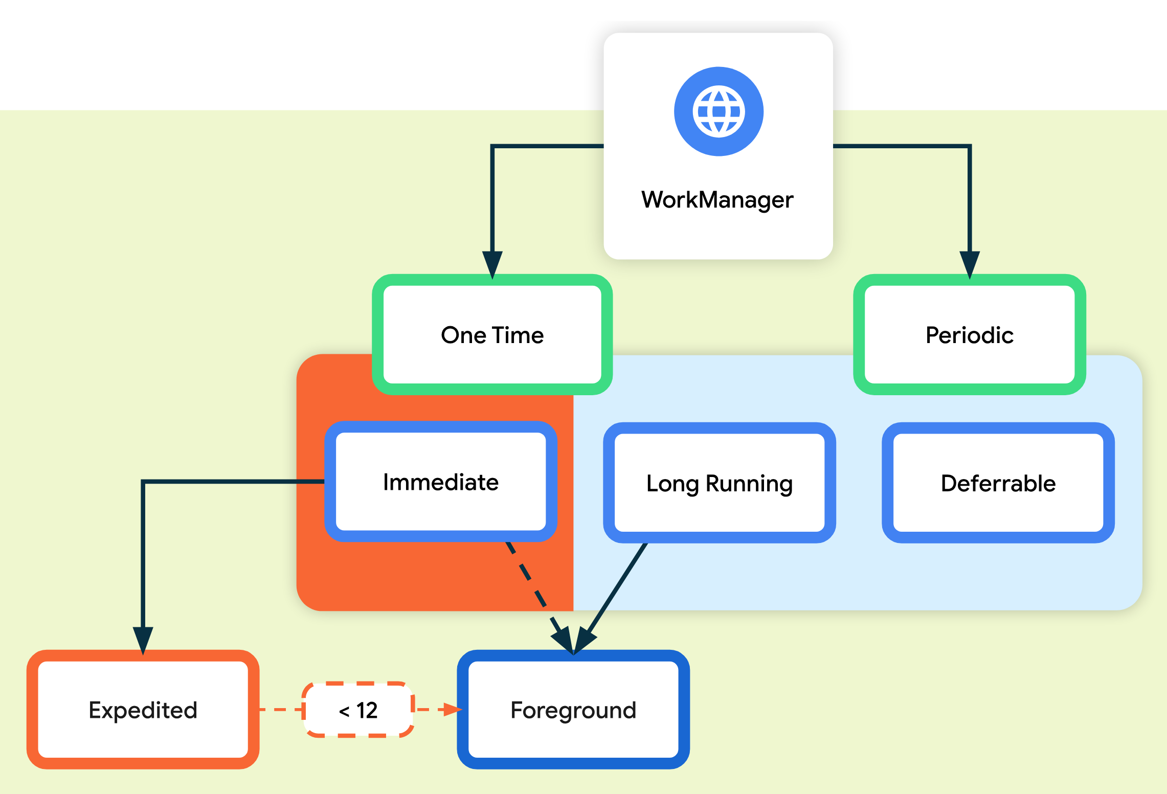 - 你明确要求取消它( 例如通过调用 WorkManager.cancelWorkbyId() 取消)。