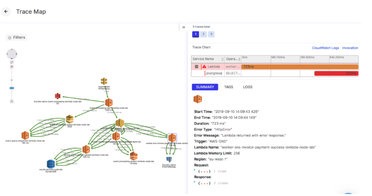 可以在上面的屏幕快照中看到业务流程,该屏幕快照来自Thundra控制台,并且是自动绘制的。