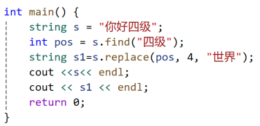 string& replace(int pos, int n, const string& str): 从pos开始,连续n个字符替换成str