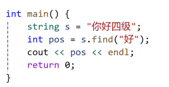 int find(const& string str,int pos=0):从pos开始,string中寻找字符串为str的子字符串的起始位置,如果没找到,则返回-1