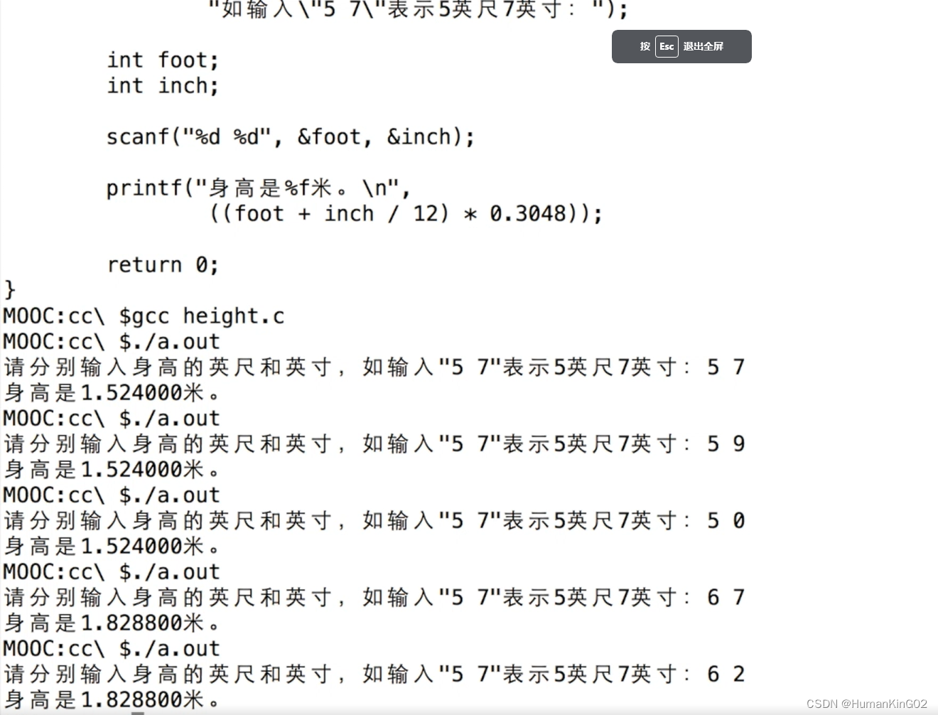 这个一个把英尺英寸换算成米的程序