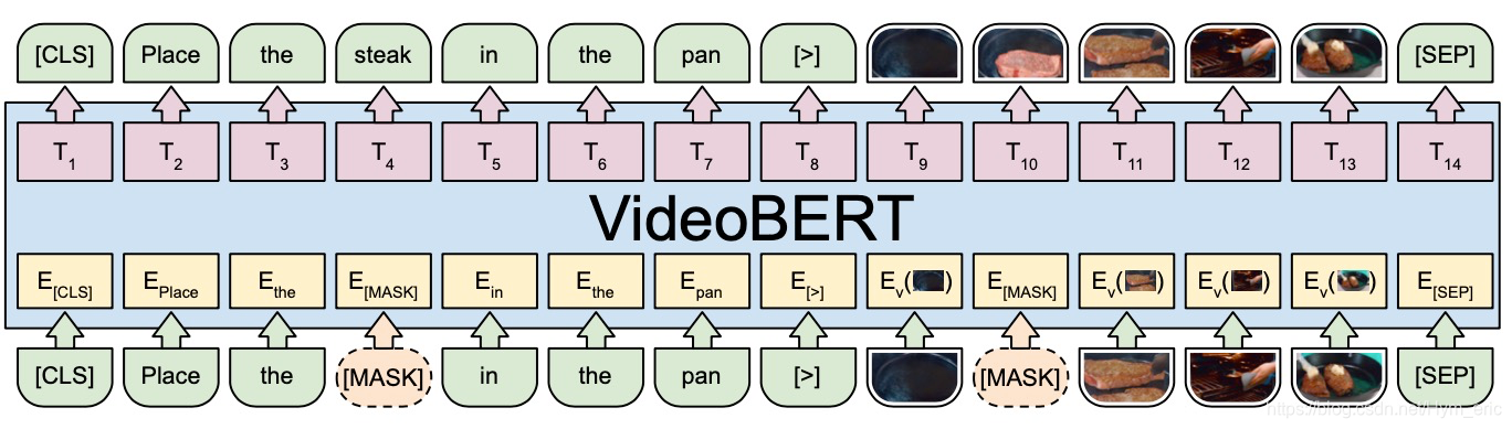 模型:看上出很简单,就是利用了bert的模型,输入输出不仅仅是文本,将视频和文本相结合一起自监督训练,不仅可以得到单文本或者单视频内部的关系,还可以得到文本和视频的对应关系。