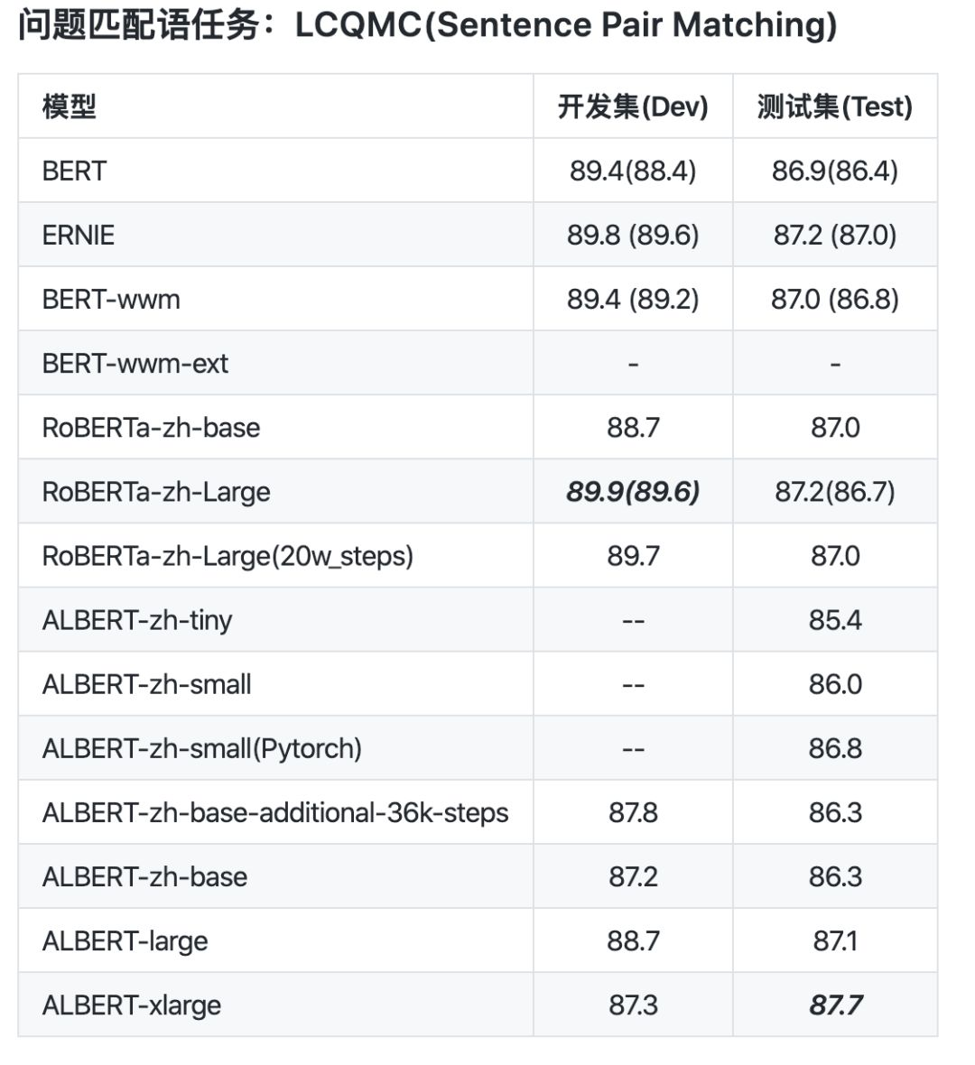 albert_zh 预训练生成的训练数据更多、使用的序列长度更长,预计 albert_zh 会有比 roberta_zh 更好的性能表现,并且能更好处理较长的文本。