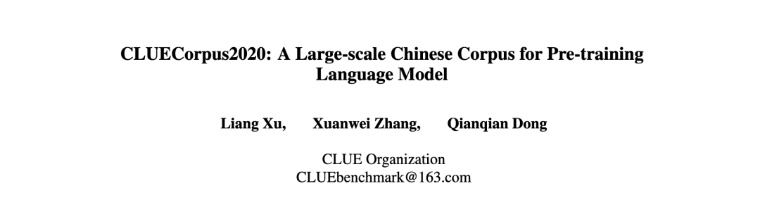 最近,CLUE 组织又陆续开源了 100 GB 的中文语料,以及高质量的中文预训练模型集合,并且在 arViv 提交了一篇论文。