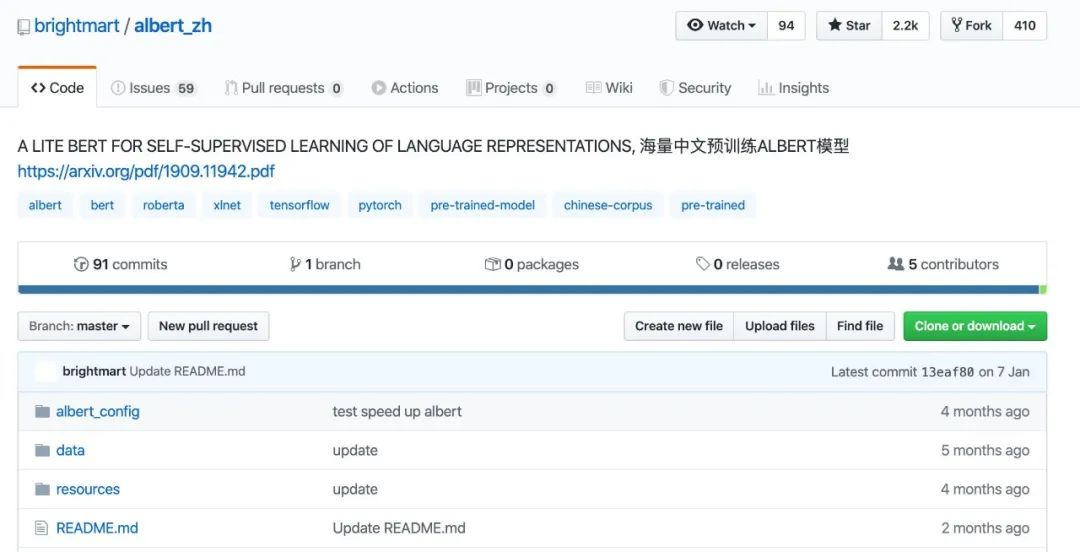 值得一提的是在 2020 年 1 月,谷歌 AI 发布了 ALBERT V2 ,才缓缓地推出了 ALBERT 的谷歌中文版。