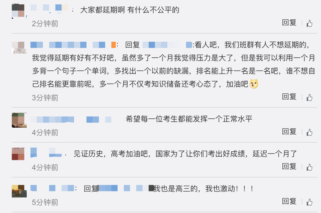 但也有一些考生表示「复习太累了,并不想延期」、「复读很煎熬」、「7 月太热担心考试会中暑」等等。