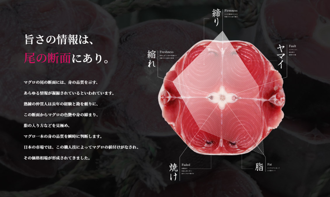 使用图像识别,将金枪鱼品质评定这一步骤自动化,可以大幅简化鉴定工作,并根据客户的需求选择最适合的产品。