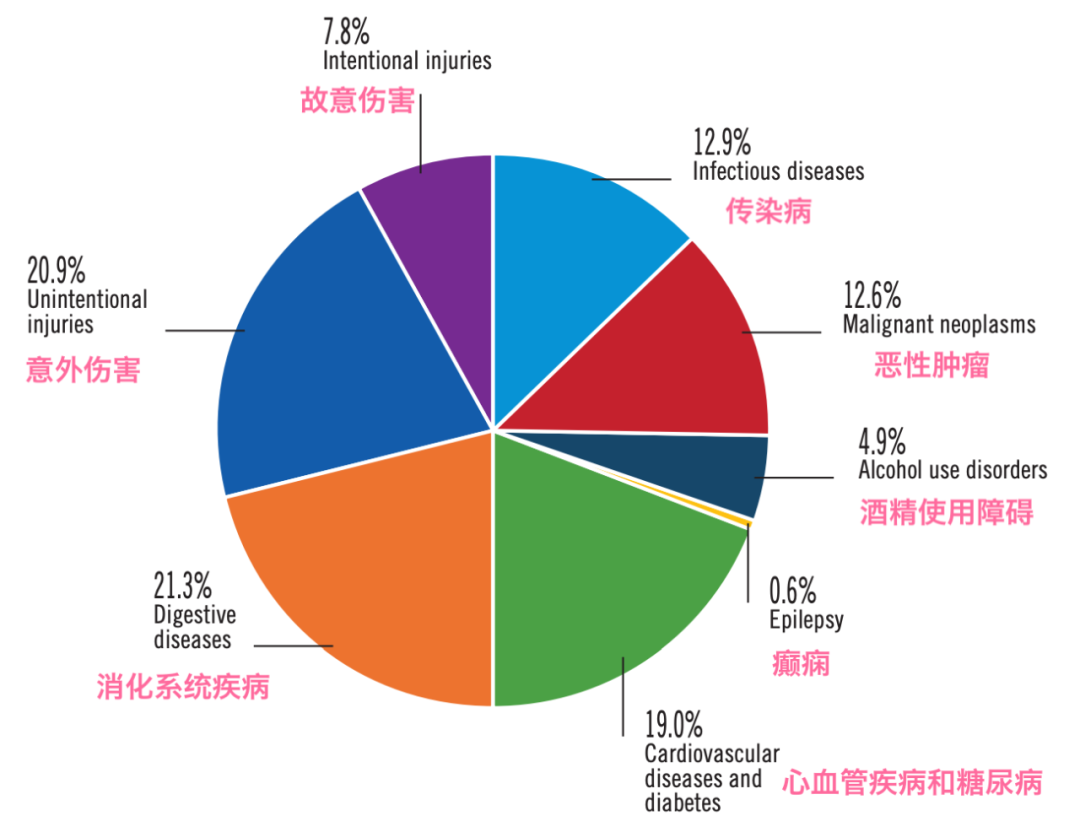 据世卫组织调查报告显示,每年全球因酒精致死 300 万人,酒精的有害使用占全球疾病负担的 5.1%。