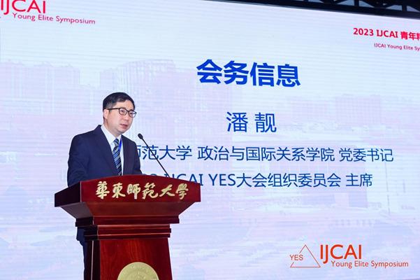 开幕式最后,华东师范大学政治与国际关系学院党委书记、2023 IJCAI YES 大会组织委员会主席潘靓以轻松的口吻向大家介绍了本次会议会务情况。