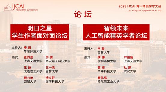 本届大会完整议程及嘉宾名单参见: 2023 IJCAI YES 官网: https://ijcai.org.cn/