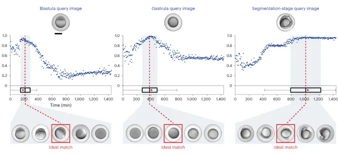 研究者提出,可以利用孪生网络计算测试图像与同一胚胎在早期时间点的其他图像的相似性判断发育阶段。