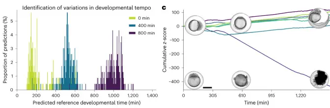 通常情况下,可以使用参考胚胎图像来评估测试胚胎的发育时间,但是对于新发现或未经表征的物种,可能无法获得这样的参考图像。