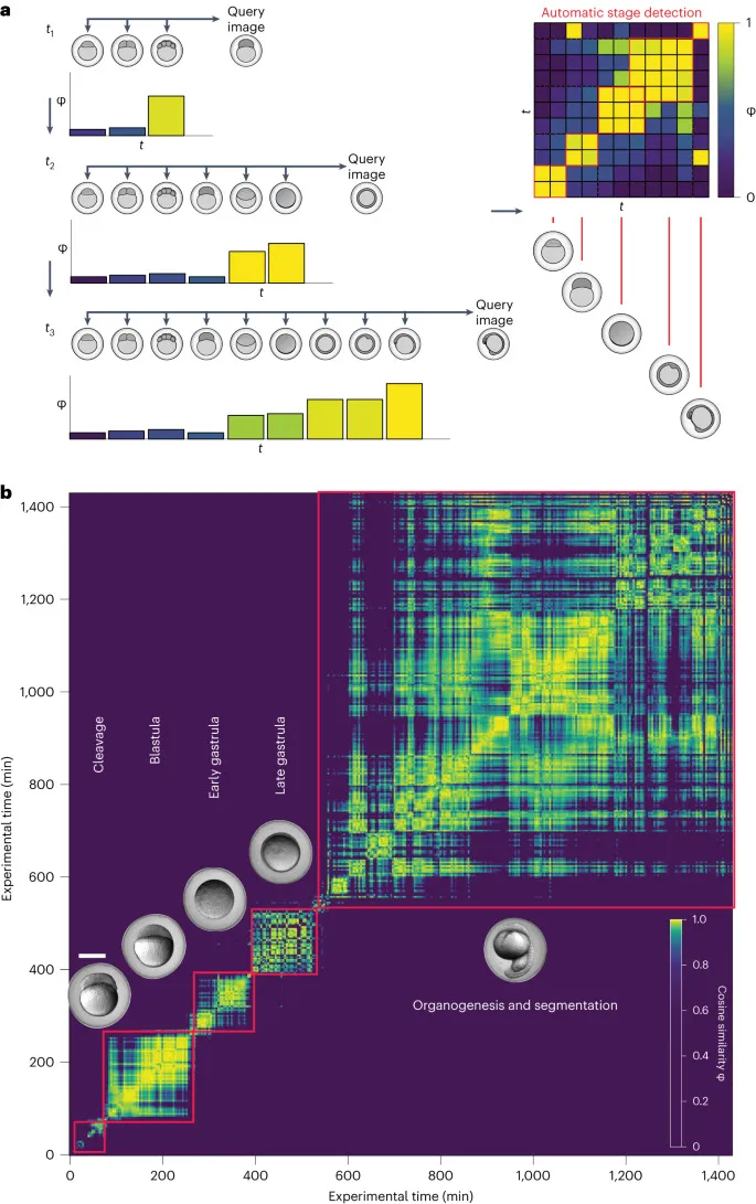 为了客观建立发育时间与发育速度的关系,系统生物学家 Patrick Müller 领导康斯坦茨大学研究人员,开发了一套基于孪生网络的深度学习方法,通过图像对比,它能够自动捕捉胚胎发育过程,并在没有人为干预的情况下识别胚胎发育特征阶段点。目前,相关成果已发表于「Nature Methods」。