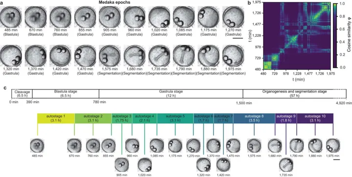 在动物发育过程中,胚胎随着时间的推移会发生复杂的形态变化,研究者们希望能够客观地量化发育时间和速度,并提供标准化的方法以分析早期胚胎所处阶段,更好地认知进化与发育流程。