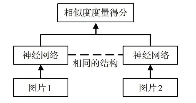孪生网络结构由两个相同结构的并行神经网络构成,可以同时接收两个图片作为输入,并且两个神经网络之间权值共享,通过基于特征嵌入的相似度计算,对图像进行比较。